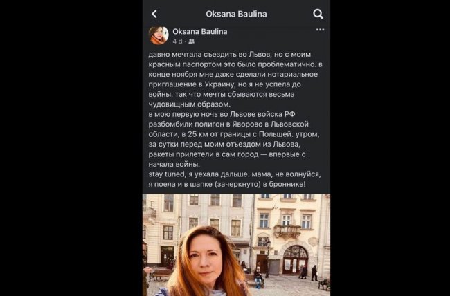 23 марта в Киеве погибла журналистка The Insider Оксана Баулина, наша коллега и подруга. Она снимала разрушения после обстрела российскими войсками Подольского района и попала под новый обстрел. Оксана долгие годы работала в глянцевой журналистике, а потом резко изменила карьеру ради борьбы за справедливость и будущее России. Друзья, коллеги и близкие Оксаны делятся воспоминаниями о ней.