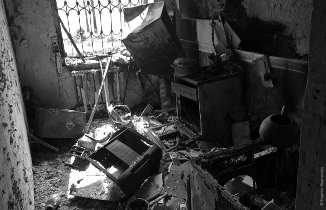 Была еще одна неприятная встреча, как я предполагаю, с сотрудниками министерства госбезопасности ДНР. Они ходили по дворам и спрашивали жильцов, не живет ли в домах кто-то из СБУ, из военных, из украинских активистов. Ну и один решил, очевидно, выслужиться перед ними и сдал меня, сказав, что я снимаю на фотоаппарат все, что происходит. Меня подзывают: «Ну, корреспондент, рассказывай, что ты там наснимал». «Да ничего особенного, — говорю. — Снимал, как люди готовят еду на кострах. Но и этого уже нет, все сгорело. Вон там моя квартира, если хотите, могу показать два сгоревших фотоаппарата». А в подвале, где мы жили, у меня лежал еще один фотоаппарат, целый, и весь мой фотоархив. Так что все это могло кончиться очень неприятно. Помню, он еще спросил: «Чечены вам головы резали?» — «Нет, слава богу». — «Ну а мы будем резать». Тем не менее они от меня отстали. А тот товарищ, что хотел за мой счет заработать себе «очки», потом получил от них же по морде: он хотел с их помощью отжать квартиру соседа, а им, видно, это не понравилось.