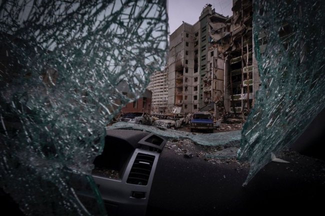 Многоэтажки, разрушенные от удара российской ракетой, Чернигов, март 2022
