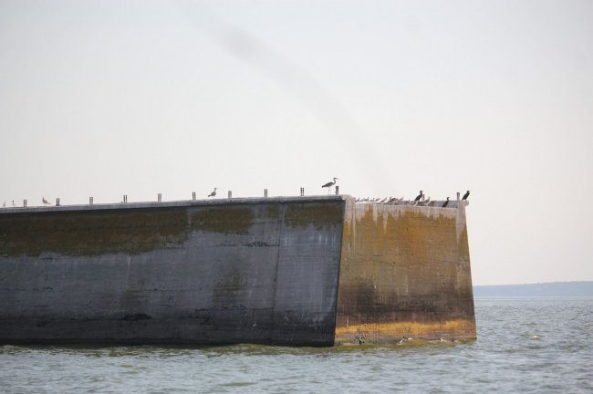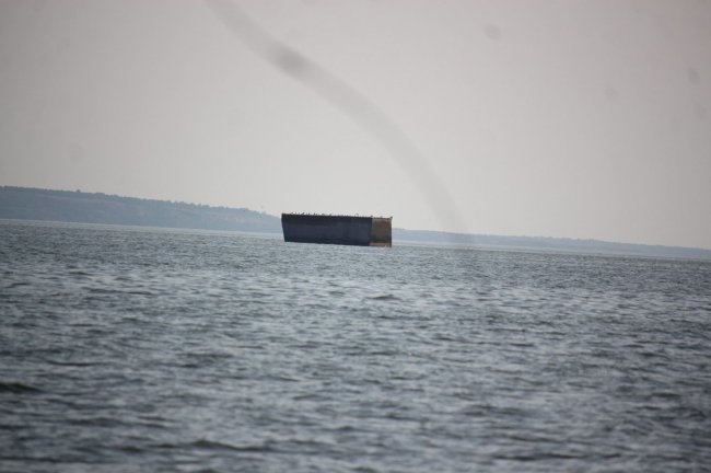 В Telegram-канале Grey Zone, смогли опознать «баржу». Ей оказалась опора моста через Днепр вблизи Энергодара, построенного в 1943 году немецкими оккупантами и через полгода взорванного немецкими же саперами при отступлении. В таком виде остаток моста и простоял 78 лет до победоносного удара российских вертолетов.