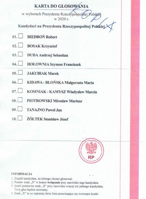 Удивительно, но авторы фейка даже не подумали написать текст на бюллетене на польском языке, ограничившись только украинским. А польские фактчекеры из издания Fakenews.pl обратили внимание, что печать на бюллетенях отличается от печати польской Государственной избирательной комиссии. Она скопирована со штампов на конвертах, использовавшихся на выборах 2020 года, которые из-за пандемии проводились по почте.