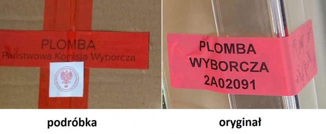 Слева пломба на упаковке бюллетеней «львовского референдума», справа настоящая пломба польского избиркома