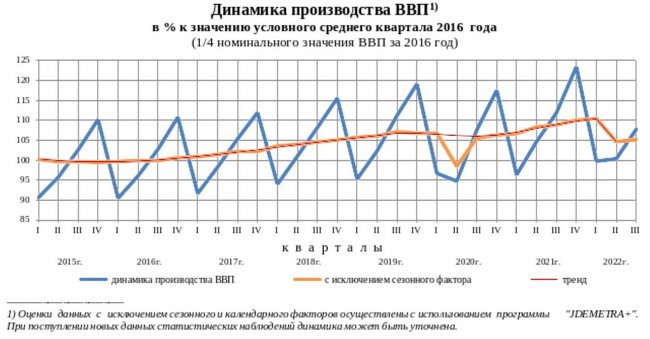 Методика подсчетов ВВП такая, что каждый год в I квартале этот показатель оказывается минимальным, весь год растет, достигает максимума в IV квартале, затем падает и снова начинает расти. Это наглядно видно на графике, опубликованном Росстатом: