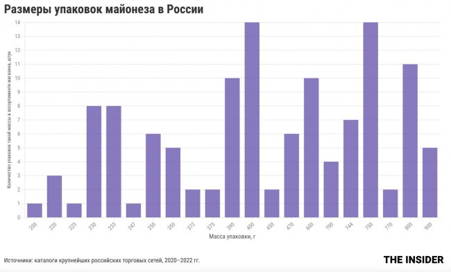 По сравнению с прошлым годом, стоимость так называемого «базового набора» продуктов выросла в 2022 году уже на 16%, и это несмотря на падающий спрос даже на основные товары. Ритейлеры отметили, что 10% их продаж сейчас приходится на «собственные бренды» — как правило, они дешевле рекламируемых товаров производителей. Правительство с начала года пытается ограничить наценку ритейлеров, чтобы продукты не дорожали слишком сильно. Производители и ритейлеры оказались в трудной ситуации: без сильного повышения цен они разорятся, а если их все же повысить, спрос упадет еще сильнее и вдобавок начнутся проблемы с государством. Один из способов обойти эти проблемы — просто незаметно уменьшить упаковку (по-английски эта уловка называется shrinkflation, от слова shrink — сжатие). Уже сложно найти молоко в привычной литровой упаковке, пачка масла, как правило, меньше 200 грамм, макароны ужались с 500 грамм до 400, и даже яйца иногда продают в упаковке по 8 или 9 штук. The Insider изучил, как в России уменьшилась тара для разной продукции.