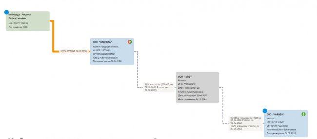 8 октября этого года ООО «УВТ» Молодцова было ликвидировано. За пару месяцев до этого права на апартаменты перешли к ООО «Амрита», которое также через цепочку юрлиц контролирует чиновник.