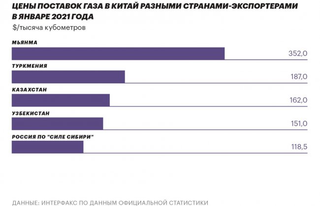 Сегодня, благодаря данным Генеральной администрации по таможне КНР, мы знаем цену - и это не $350, не $380, а… всего $118,5 за тысячу кубометров. Это втрое ниже цены газа, публично называвшейся три года назад, и, как видно по приведенной выше ссылке на данные «Интерфакса», существенно (и даже в разы) ниже всех текущих расценок на газ - на поставки СПГ, на европейском спотовом рынке, на трубопроводные поставки газа в Китай из Мьянмы и Центральной Азии (Мьянма, например, продает газ Китаю втрое дороже, чем Россия по «Силе Сибири»).