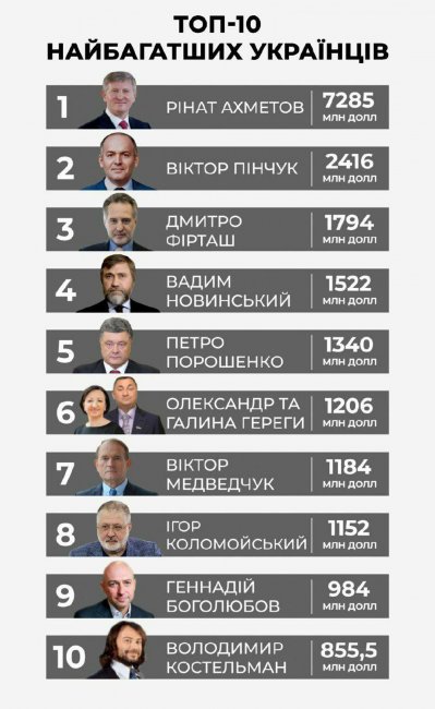 Рейтинг самых богатых людей Украины 2020 по версии журнала "Фокус"
