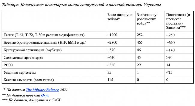 Важно понимать, что немалая часть тех вооружений, которые номинально были у Украины накануне полномасштабного вторжения России, была естественным образом не готова к использованию. Другая и тоже немалая часть была потеряна в боях с Россией или в результате массированных ракетных ударов в первые дни и недели войны. Также не стоит забывать, что даже уцелевшая военная техника требует соответствующего регулярного обслуживания, обладает конечным ресурсом и после четырех месяцев войны зачастую нуждается в капитальном ремонте. Кроме того, захваченная российская техника в редких случаях может быть сразу введена в строй и тоже предварительно требует серьезного ремонта и доукомплектования.