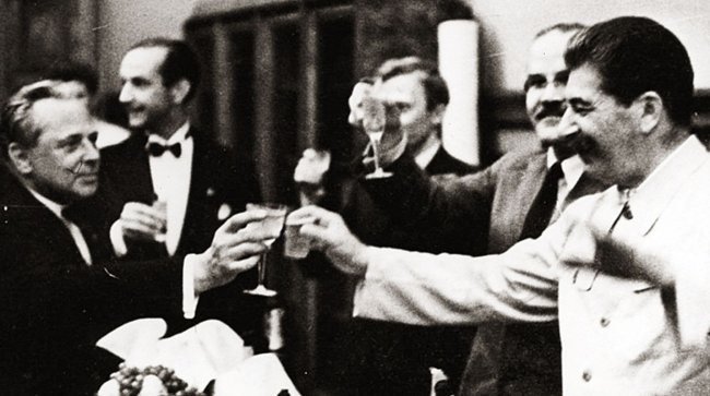 Банкет в Москве после подписания пакта Молотова-Риббентропа, 1939 год.