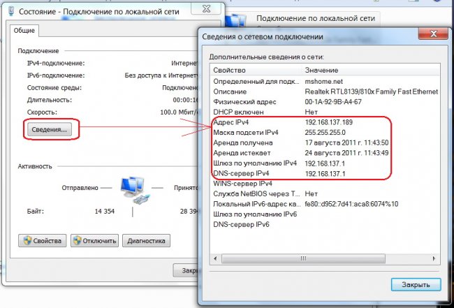 Фото: состояние подключения по локалке
