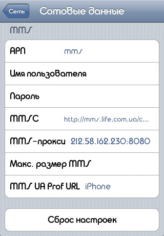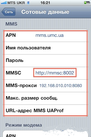 - данные APN – у каждого оператора свои;