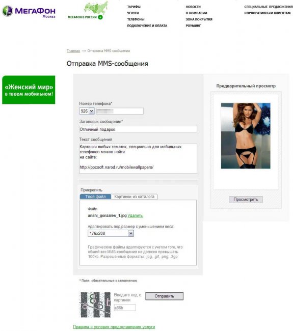 Отправка ММС с компьютера на телефон с сайта оператора