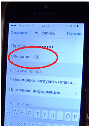 - затем в поле «Описание» стираем надпись «iCloud» и затем жмем «Готово»;