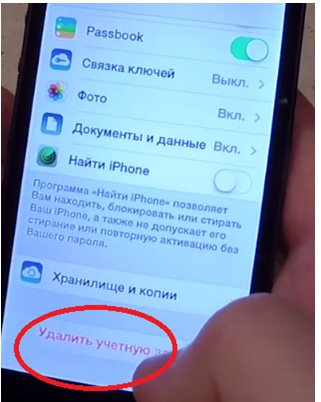 - заходим обратно в настройки iCloud и прокручиваем список вниз. Внизу можно будет увидеть надпись «Удалить учетную запись»;