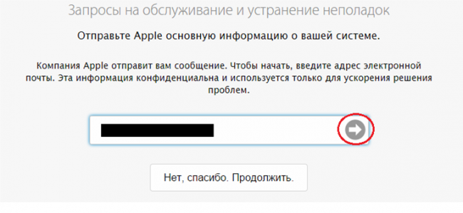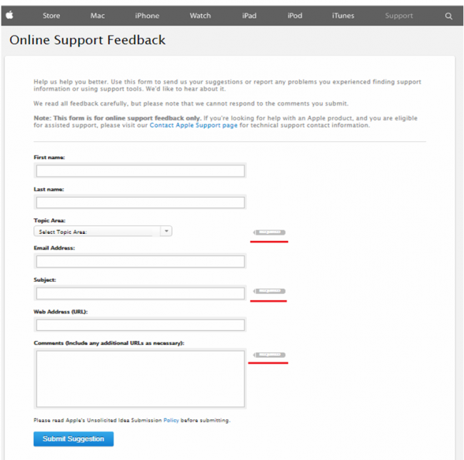 - необходимо перейти на страницу службы поддержки по следующему адресу: http://apple.com/support/feedback/;