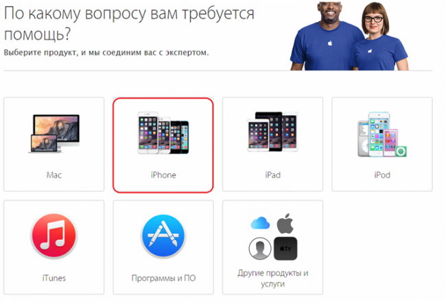 - перейти по адресу www.apple.com/ru/support/contact/;