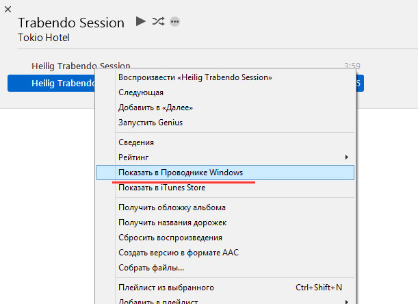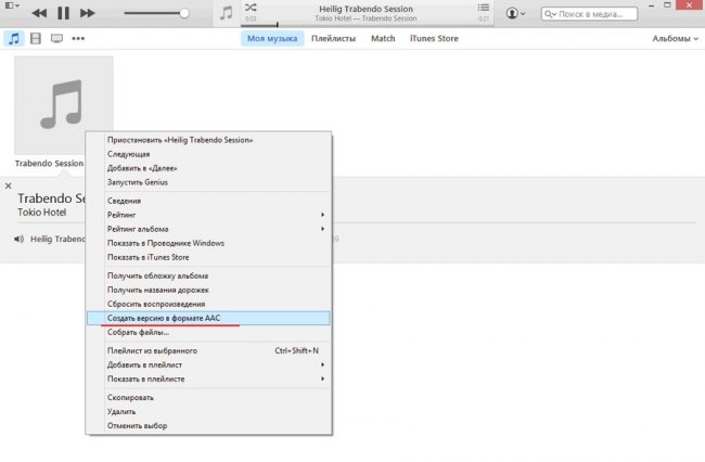 - затем правой кнопкой мыши необходимо щелкнуть по треку и выпадающем контекстном меню выбрать «Создать версию файла в формате ACC»;