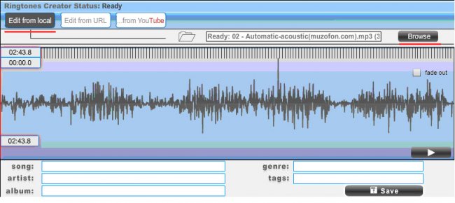- затем необходимо кликнуть на вкладку «Editfrom Local», и далее щелкнуть на «Browse», чтобы выбрать нужный трек;