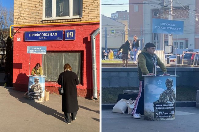 Попасть на войну в Украине теперь можно буквально на выходе из московского метро. Агитационные пункты, больше похожие на стойки продажи нелегальных сим-карт, появились по меньшей мере у пяти станций. Система призвана максимально упростить процесс набора контрактников и отправки их в зону боевых действий. Дежурящие у стоек люди называют себя волонтерами службы отбора, занимаются информированием и раздают листовки с описанием преимуществ контрактной службы.