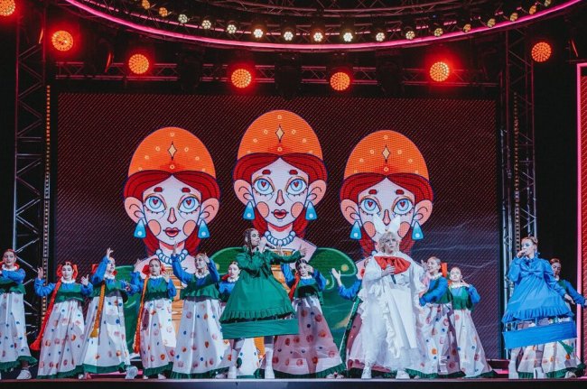 За основу костюмов для танцоров, например, взяли косоворотку, основательно порезали ее, получилось очень красиво. Для песни «Кукла Маша» использовали образы дымковской игрушки.
