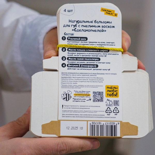 Сейчас в «пчелиной» линейке 22 продукта — шесть наборов, 14 видов отдельных бальзамов и два вида воска для пяток. Были еще масла для кутикул, но производство временно приостановили из-за проблем с отливом большого количества. Было много ручного труда из-за этикетки.