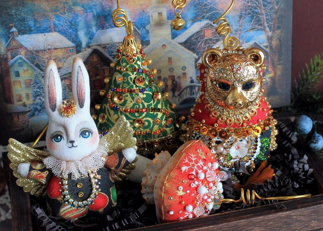 Постепенно Анастасия начала шить и елочные украшения. Использовала узнаваемые образы животных, экспериментировала и выработала свой собственный стиль — русскую неоготику. Игрушки продавались, в группе в социальных сетях стал формироваться спрос.