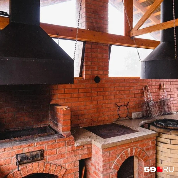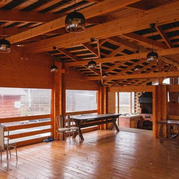 На территории фермы построили три гостевых домика (они рассчитаны на 6 и 8 человек), есть отдельный банкетный зал и большая открытая терраса с мангалом.