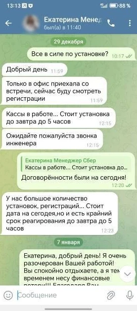 Предприниматели позвонили на горячую линию банка и узнали, что выезд инженера перенесен на 3–4 января. По словам Олеси, инженер позвонил 4 января и спросил: «Вам новое или старое [оборудование] надо?». Предприниматели уточнили, что платили за новое. «А его у нас нет в наличии», — ответил инженер.
