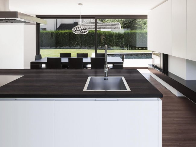 Каменные столешницы имеют наиболее высокую цену, но при этом станут прекрасным дополнением любого интерьера, устойчивы к влаге, температурным перепадам, царапинам, истиранию, ударам, а шлифовка позволяет вернуть столешнице изначальный вид.