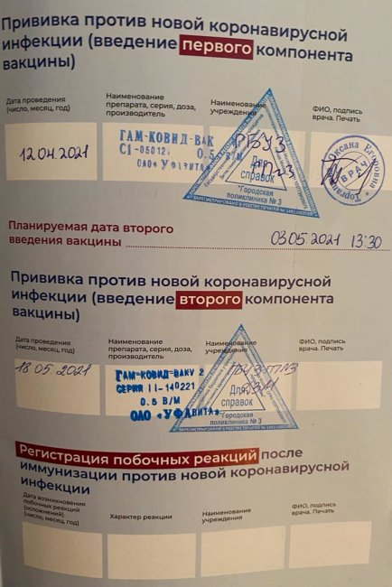 «Я подписывала согласие на «ГамКовидВак, — рассказывает Альбина из Владивостока, — после прививки мне выдали памятку о возможных побочках, где тоже было указано, что мне поставили «Спутник». В печатный сертификат внесли сведения о прививке, но я его, конечно, не проверяла, врач мне ампулу не показывала, но на тот момент я даже не думала, что об этом стоит просить. Во время второго этапа — такая же ситуация, все данные внесли, я об этом даже не задумывалась. Спустя две недели мне позвонили из клиники и назначили анализ на антитела, добавив при этом, что для приема нужен полис ОМС и печатный сертификат о прививках. На следующий день я стала собирать документы и решила отчего-то заглянуть в свой сертификат. То, что я увидела, вызвало во мне совершенный шок — в сертификате стоят две совершенно разные вакцины «Спутник» и «ЭпиВакКорона». Проверяю на «Госуслугах» — там нет второго этапа вакцинации (и до сих пор нет). Прихожу на следующий день в поликлинику, сдаю кровь на антитела, отдаю врачу свой печатный сертификат о прививках и прошу разобраться и выяснить, что произошло. Вечером врач мне перезванивает и сообщает, что это ошибка, и на самом деле мне поставили две вакцины «Спутника», а «ЭпиВакКорону» медсестра внесла случайно. Но кроме слов врача у меня больше подтверждений нет. При этом результат теста на антитела мне также не выдали, аргументируя это тем, что записывали меня по телефону, а для теста необходимо направление. Сказали только, что антител по результатам исследования у меня нет. Сейчас хочу сделать другой тест уже в платной клинике, но, откровенно говоря, я до сих пор не знаю, что мне поставили, и совершенно не уверена, что первая вакцина была именно «Спутник».