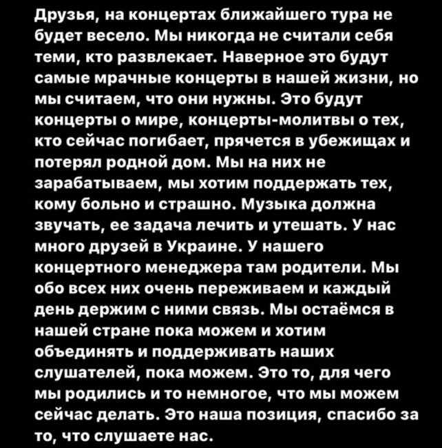 Вот, например, что пишет группа АИГЕЛ в своем Instagram 9 марта: