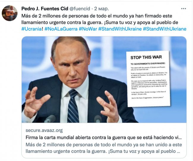 В свои 83 года Педро Фуэнтес-Сид ведет общественную жизнь, активен в соцсетях и с первых же дней вторжения поддержал борьбу Украины