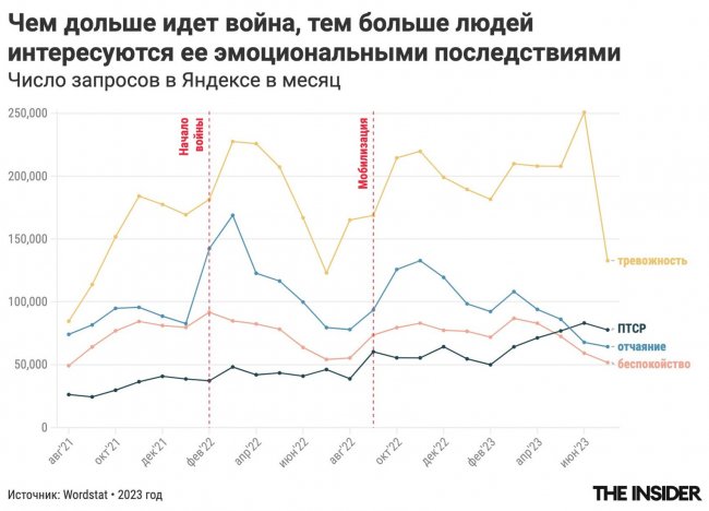 Одновременно растет и осведомленность россиян о посттравматическом расстройстве — с сентября 2022 года его ищут все чаще и чаще.
