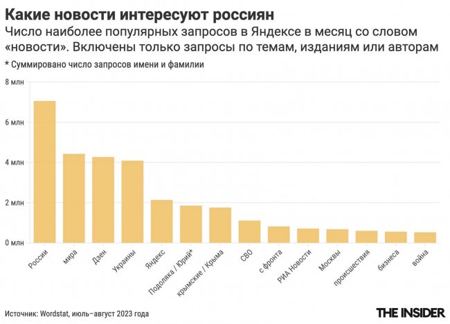 Впрочем, мобилизация заинтересовала россиян значительно больше, чем война: в сентябре и октябре информацию о ней искали почти 80 млн раз, а о войне — 60 млн. Притом что именно мобилизация заставила россиян интересоваться войной по сравнению с летом.