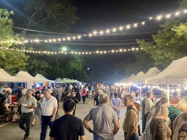 Пока на проспекте Имама Шамиля темно и идет митинг, в центре Махачкалы городские власти проводят ярмарку, концерт и прочие городские мероприятия. Сегодня вечер пятницы — в дагестанской столице тысячи туристов, и тут никаких перебоев со светом нет.