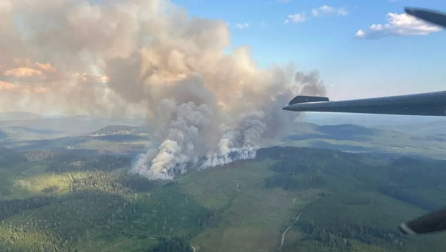 Самолет над лесными пожарами недалеко от Керсли, Британская Колумбия, Канада