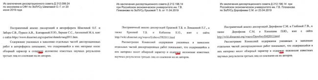 Подобные заимствования в решениях диссоветов встречаются уже далеко не первый раз. Было бы странно предполагать, что далекие друг от друга организации независимым образом «горизонтально» координируются друг с другом, чтобы оправдывать попадающих в их советы плагиаторов. Гораздо рациональнее предположить, что координация происходит в Москве – кто-то, кому очень не хочется демонтажа системы фальшивых диссертаций, может помогать с «правильными» формулировками дружественным диссоветам.