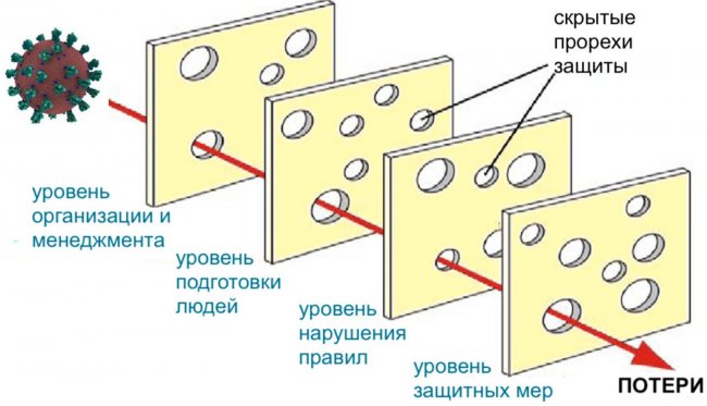 Проблема в том, что сам подход частичных ограничений вызывает сомнения (а они остаются частичными во всех европейских странах). Судя по всему, коронавирус распространяется по «модели швейцарского сыра» — каждая из линий защиты имеет совсем небольшие дырки, но вся вместе она перестает работать, когда дырки накладываются одна на другую.