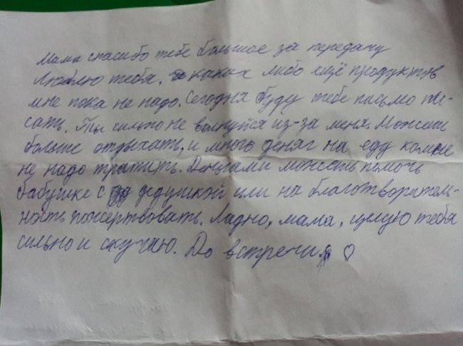 Мальчики только закончили 8 класс, у них было много планов. Мама одного из знакомых ребят по чату во «ВКонтакте» говорит, что они собирались проводить акцию «Еда вместо бомб» - кормить бездомных. «Не слышала об этом, но это в духе Никиты, - подтверждает Анна. - Он просил, если есть деньги на карте, перечислять, когда по телевизору показывали рекламу какого-то фонда, в одном из писем писал, чтобы меньше ему приносили, лучше потратить на благотворительность».