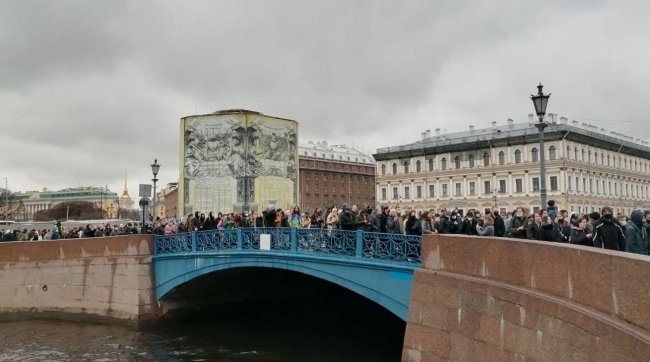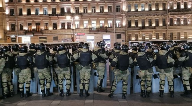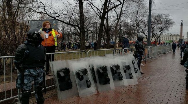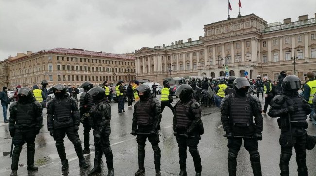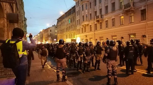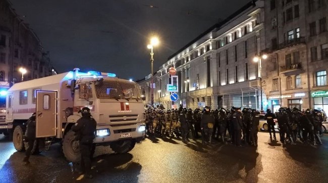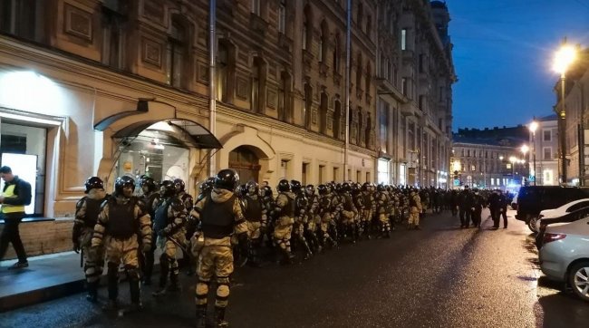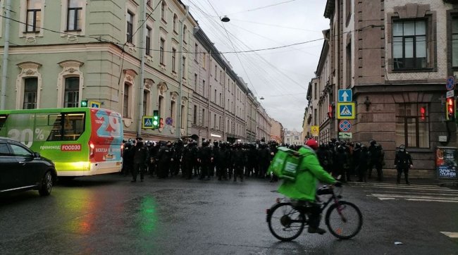 Тем временем в Петербурге протестующие также не могут пройти на некоторые улицы в центре, которые перекрывают силовики.