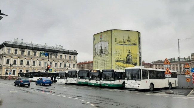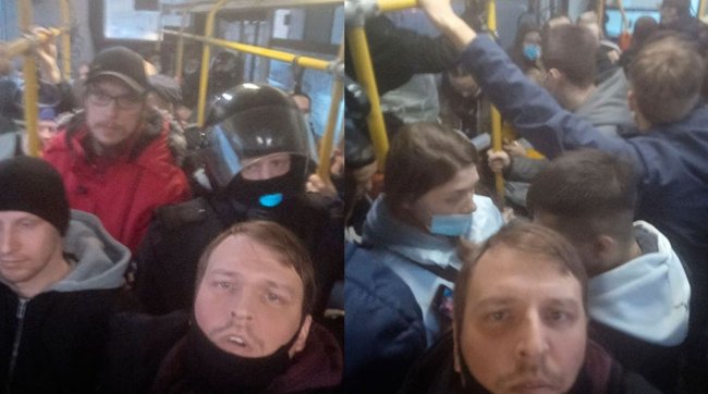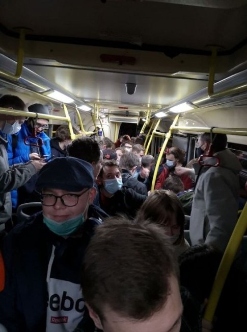 В Петербурге около сорока задержанных привезли в 45 отдел полиции. Они находятся в обычном городском автобусе.