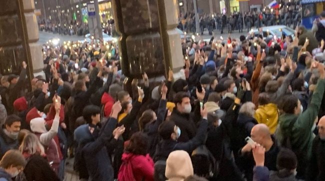Люди в Москве скандируют «Свободу!».