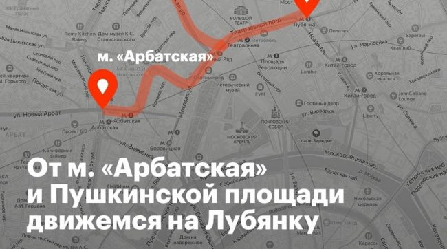 Встреча в начале Тверской улицы и дальше люди пойдут вдоль Госдумы и Большого театра — к зданию ФСБ, сообщает штаб Навального в Москве.