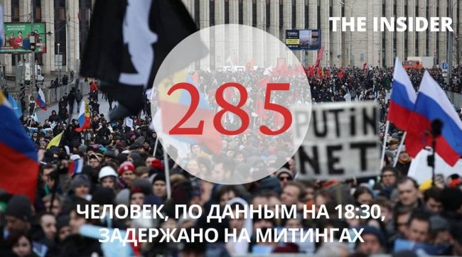 По состоянию на 19:46 по Москве задержано уже более 400 человек в 60 городах.
