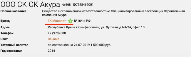 В эту ГК входит множество фирм, созданных ближайшими родственниками Аксенова. Например, ООО «Мальва Ком», которую создала теща главы Крыма Людмила Добрыня. Еще одна «дочка» «Монолита» — фирма «Монолит-плюс», владельцами которой на момент объявления о строительстве «Крымской розы» были жена Аксенова Елена и его советник Светлана Бабий. Бабий до сих пор возглавляет и «Мальву Ком», и «Монолит плюс».