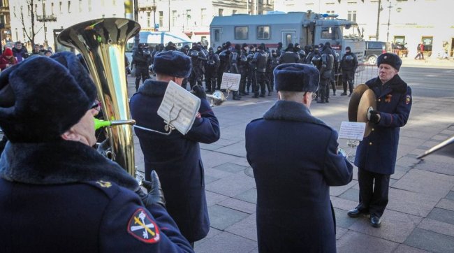 В Петербурге у Гостиного двора полицейские по громкой связи объявили, что в городе действуют антиковидные ограничения: по словам силовиков, вне закона окажутся все, кто ходит без масок, передает корреспондент «Новой». На входе в метро Гостиный двор играет военный оркестр.