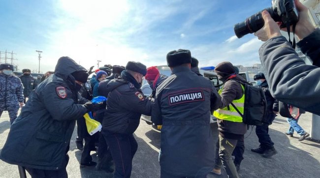 Задержали также корреспондента «Закс.ру» Андрея Окуня и двух журналистов издания SOTA — Петра Иванова и Викторию Арефьеву.