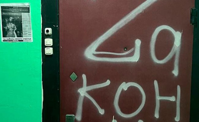 Участница Pussy Riot Рита Флорес сообщила The Insider, что неизвестные сделали на двери ее квартиры надпись «Zакон им войну» и приклеили фотографию Риты с предложением интим-услуг: