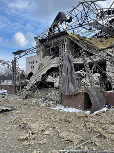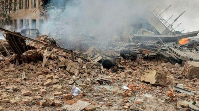Изюм полностью разбомблен. Разрушен автовокзал, суд, железнодорожный вокзал, исполком, полиция, военкомат, медицинский колледж, десятки магазинов. В больницах взрывам выбиты окна, разрушены мосты.