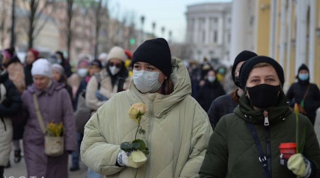 В Санкт-Петербурге продолжается протест, приуроченный ко Дню солидарности женщин в борьбе за свои права. Сотрудники полиции задерживают пикетчиц и рвут их плакаты.